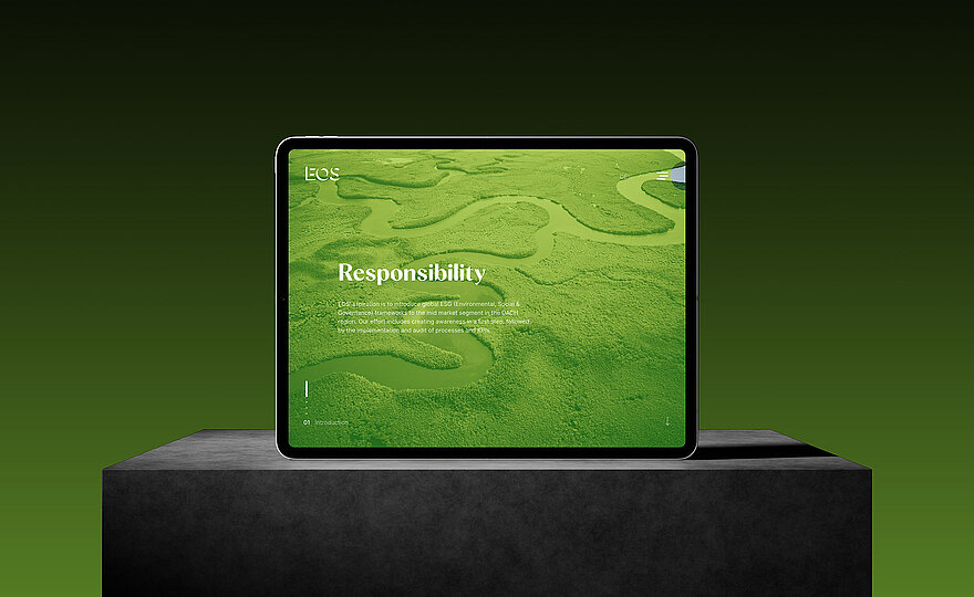 Aufgabe der Website ist es, das aktuelle Portfolio von EOS sowie die Strategie und das Team vorzustellen. Mit klaren Statements und knalligen Farben differenziert sich der Investor von klassischen Private Equity Fonds.