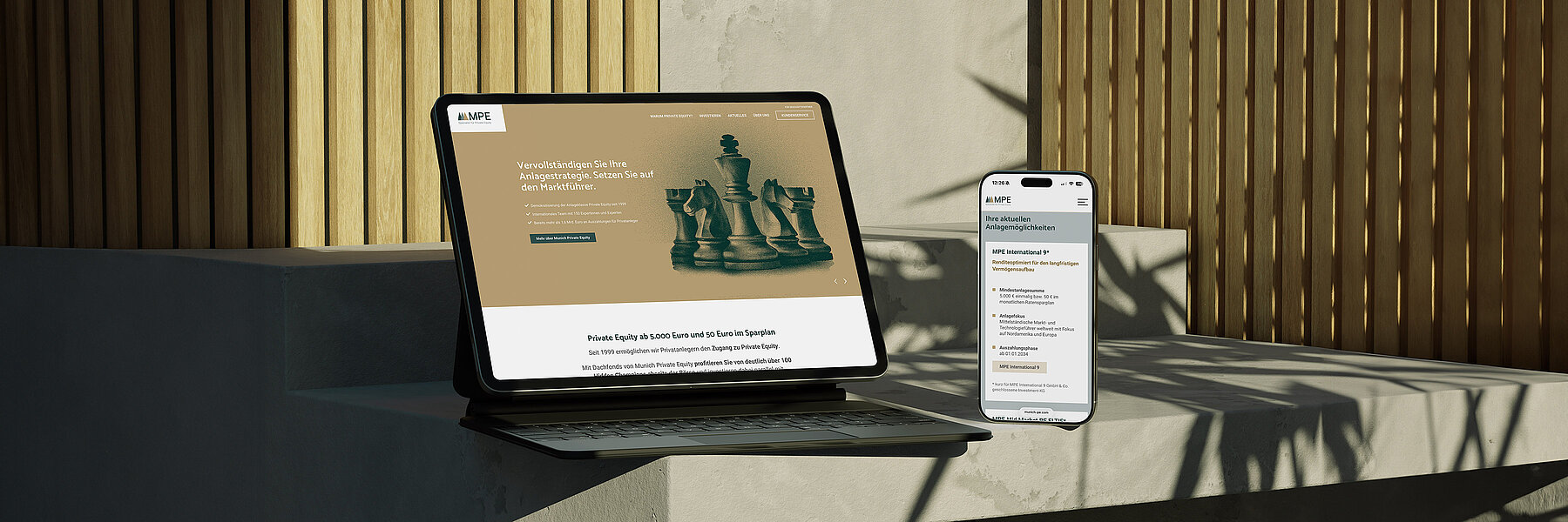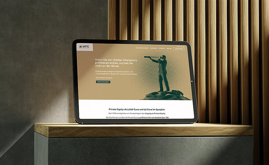MPE verkauft unter drei Buchstaben schon seit Jahrzehnten PE-Investmentvehikel an Privatanleger. Als Teil der gleichnamigen Munich Private Equity AG bietet die MPE über vergleichsweise niedrige Einmalinvestments oder Sparpläne Zugang zur lange Zeit exklusiven Assetklasse. Beim Relaunch standen die Insight-Kommunikation für unterschiedliche Zielgruppen sowie ein hochwertiges Bildkonzept im Fokus, das stilistisch konsistent, aber motivisch flexibel erweiterbar ist. Wegen unserer PE- und Finanz-Expertise konnten wir uns gegen andere Agenturen durchsetzen.